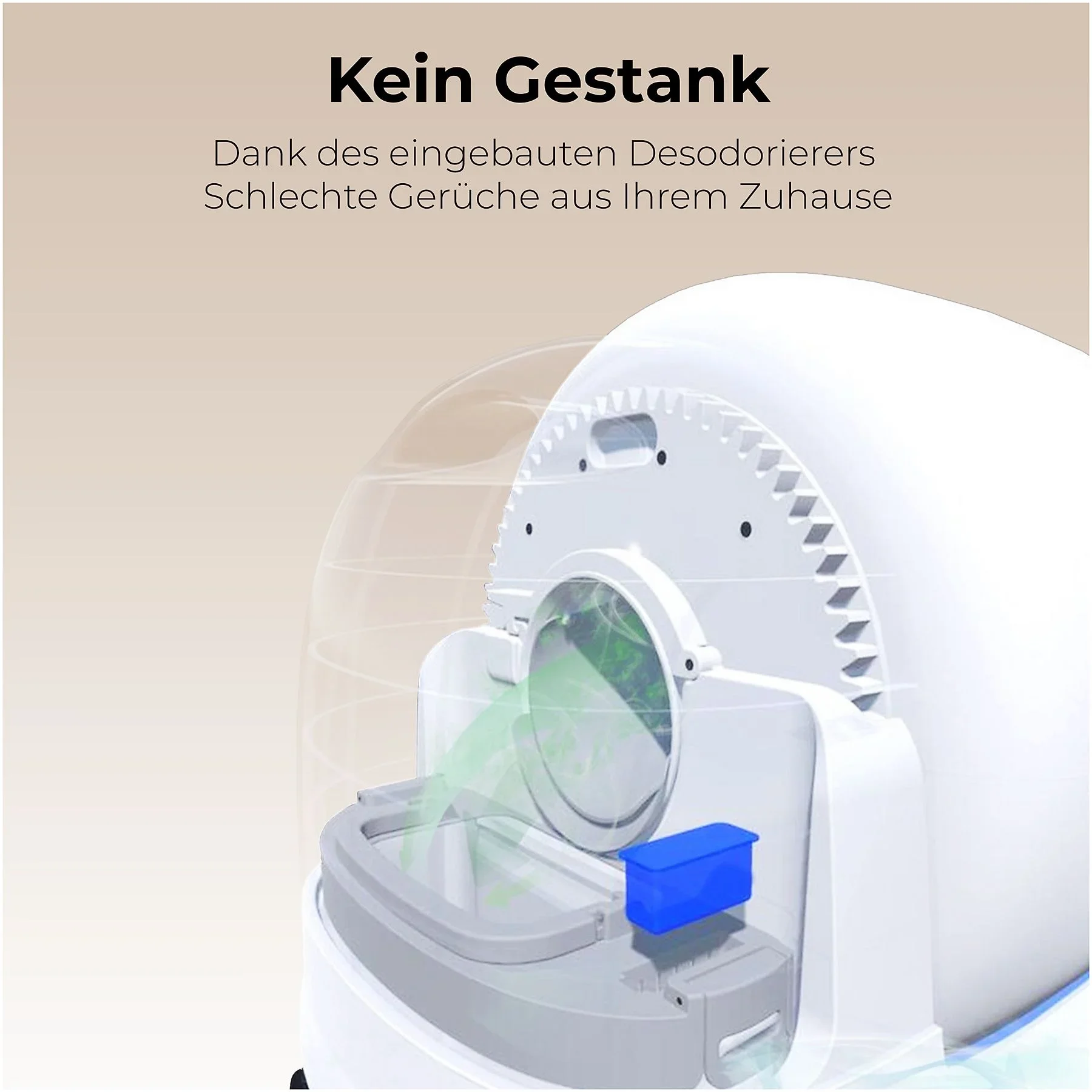 | Geruchskontrolle | Integrierter Deodorizer für weniger Gerüche • effizienter Streuverbrauch für weniger Abfall |